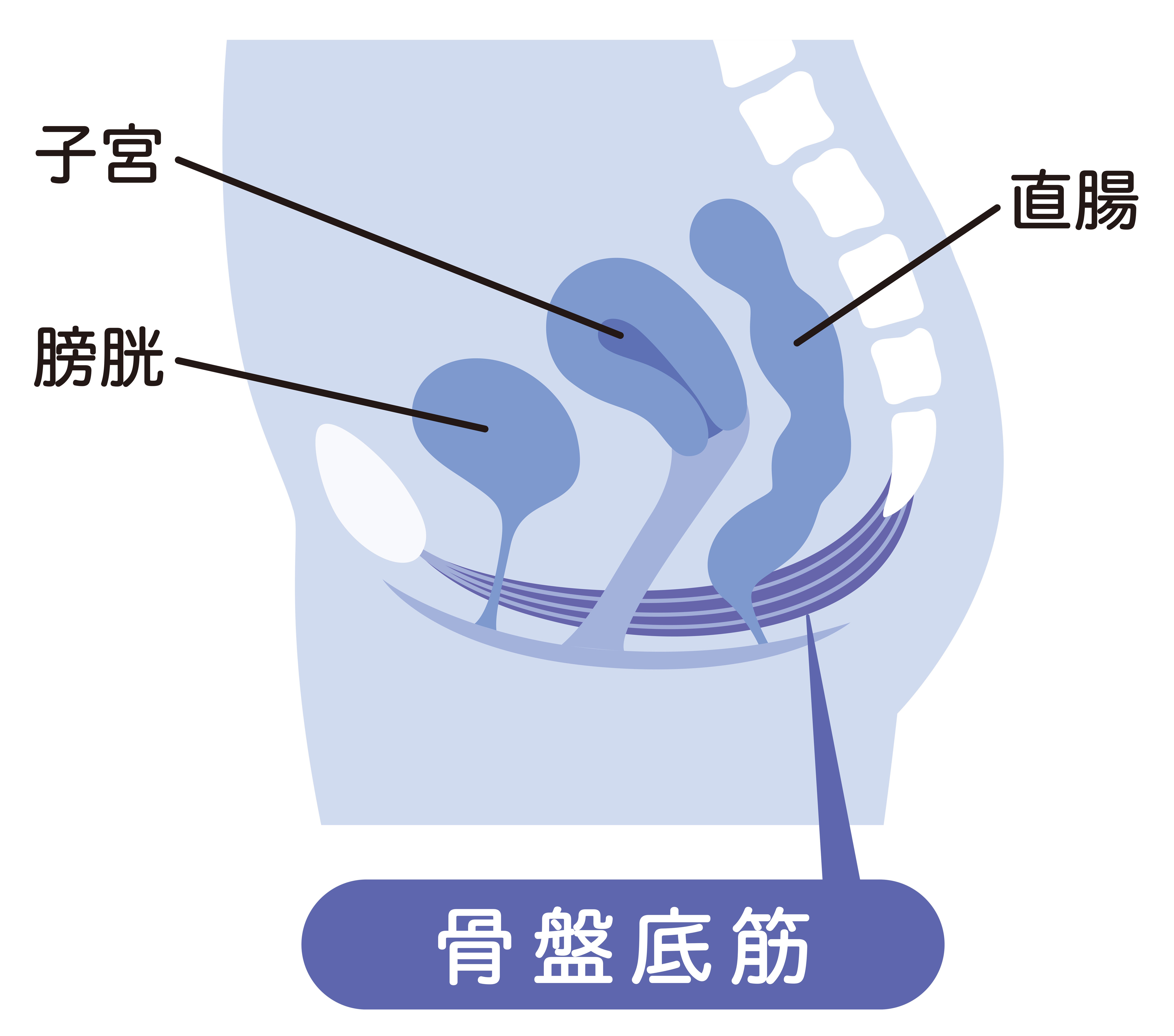 骨盤底筋は、骨盤内臓器を下から支え、正しい位置に保ちます。