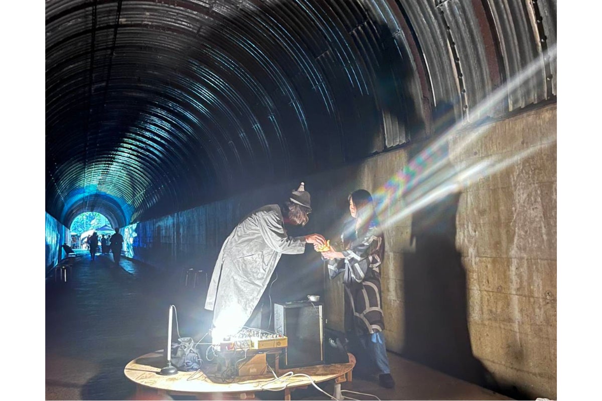 照明演出家、シンガーソングライター、ベリーダンサー、土器作家、神楽舞踏、水引アーティスト、映画監督…。多彩なジャンルのアーティストたちが、この2日間のために全国からトンネルへと集まってくれました。