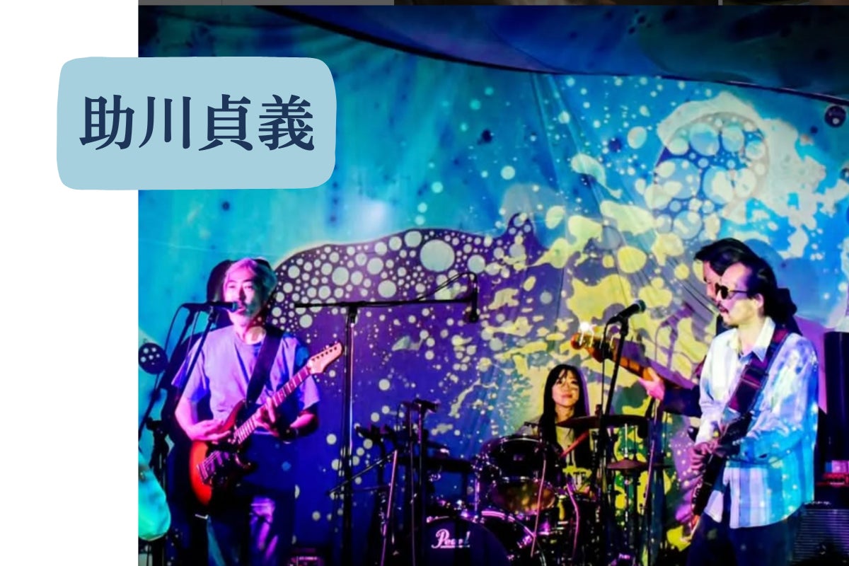 【助川貞義(すけがわ さだよし)】オイルライティング/リキッドライティング・アーティスト、フォトグラファー。1974年神奈川県生まれ。日本大学芸術学部写真学科卒業後、広告写真家・小木曽博氏に師事し、1990年に独立。商業写真の分野で活躍する一方、1990年代半ばより音・映像・照明・装飾を融合した空間演出や、日本のレイブシーン黎明期からライブイベントに参加するなど、多彩な活動を展開。