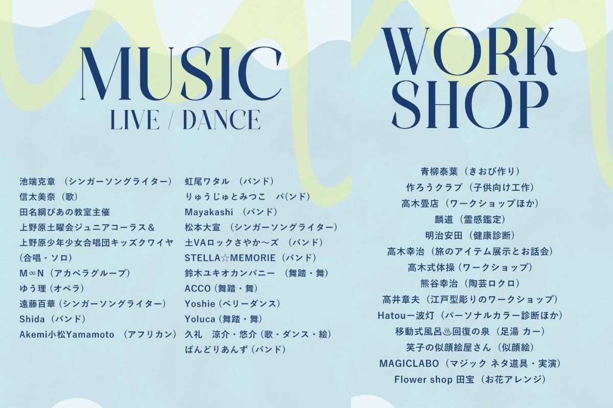 アート、音楽、ライブ、フード、クラフト、光、パフォーマンス、ワークショップなど、子どもから大人まで楽しめる多彩なコンテンツが盛りだくさん。ぜひ、会場でお気に入りのアーティストや新たな出会いをお楽しみください!