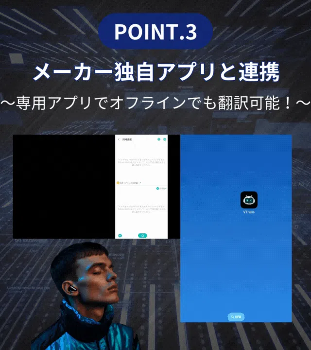 Translation earphonesをご利用になる前に、お使いのスマホに専用アプリをダウンロードしていただく必要があります。