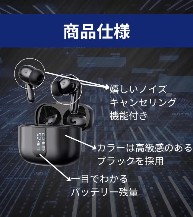 本体サイズ イヤホン:33*22.4*23.9mm;充電ケース59.9*49.3*25.8mm
