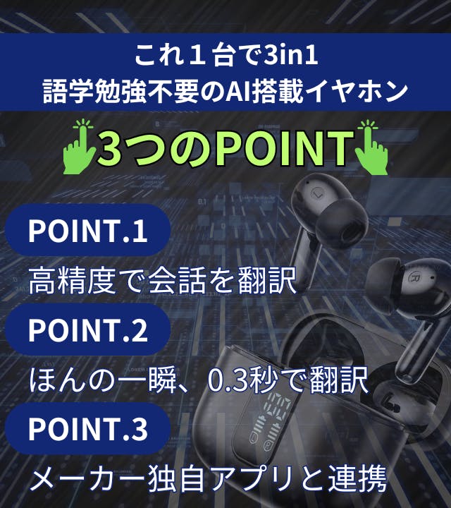 万が一電池が切れても、たった1時間でフル充電完了。そのため昼と夜の2部制の飲食店なら、休憩時間中に充電でき、1台あれば終日外国人とコミュニケーションが取ることができます。また、VORMOR V13のケースは充電ステーションを兼ね、400mAhのバッテリーを搭載しています。ケースにイヤホンを収納すれば追加充電され、しかもケースのバッテリーをフル充電しておけば、外出先でもイヤホンをフル充電可能。