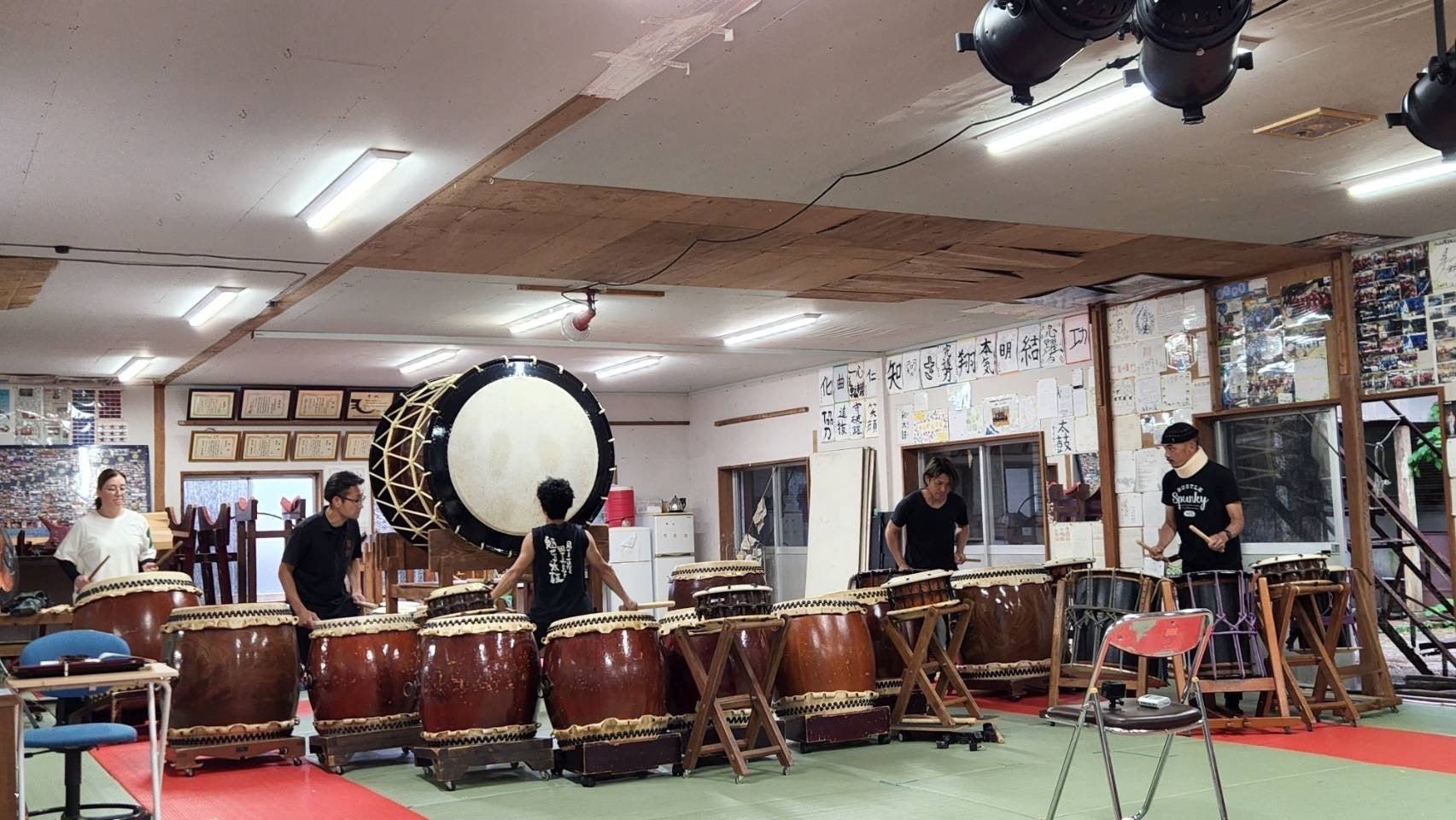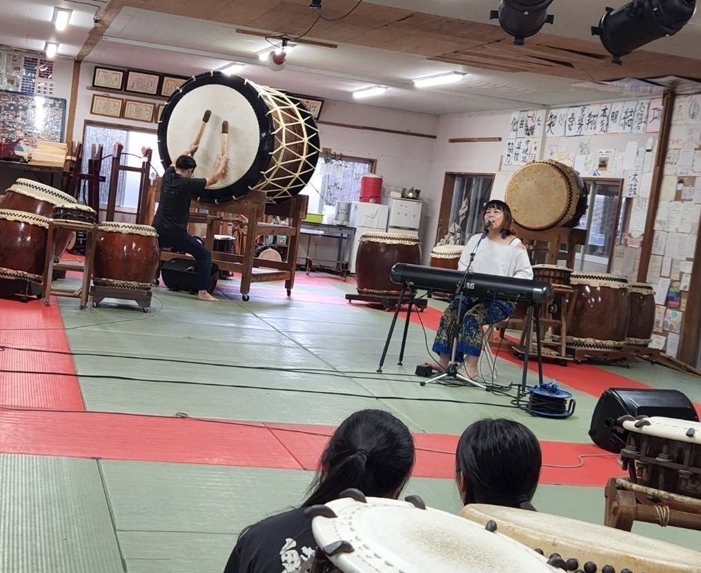 先日、明徳義塾和太鼓部の道場にて友情出演の日和さん、矢野絢子さんとの合同練習を行いました。