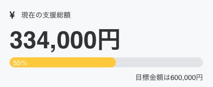 たくさんの近畿大学の学生・職員さん・OBやOG・一般の方の人の支援のおかげで、目標金額に対して55%達成まで到達しました!