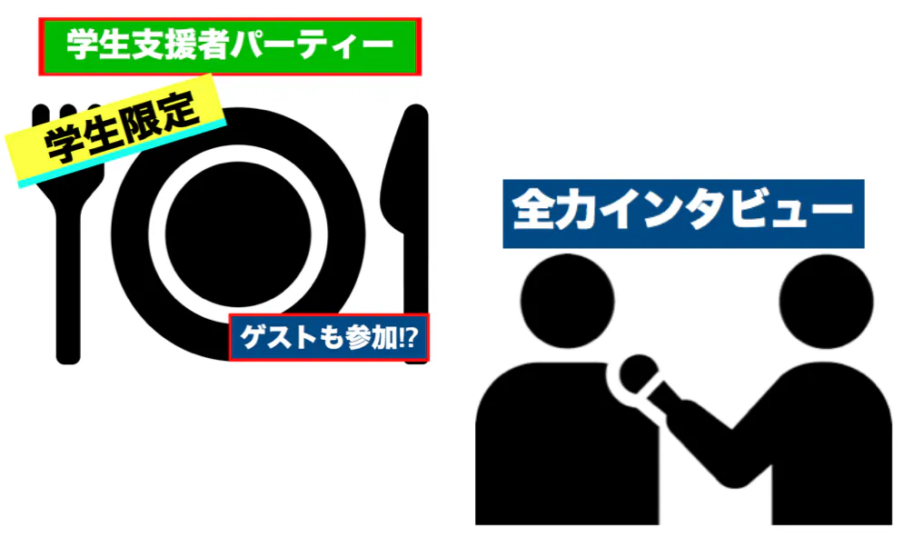 支援していただいた近畿大学OB・OGや社会人の方々に感謝の意を込めて、直接お礼の言葉を伝えにいくと同時に、少しでも会社の宣伝活動にも協力できる、全力インタビューを思考。