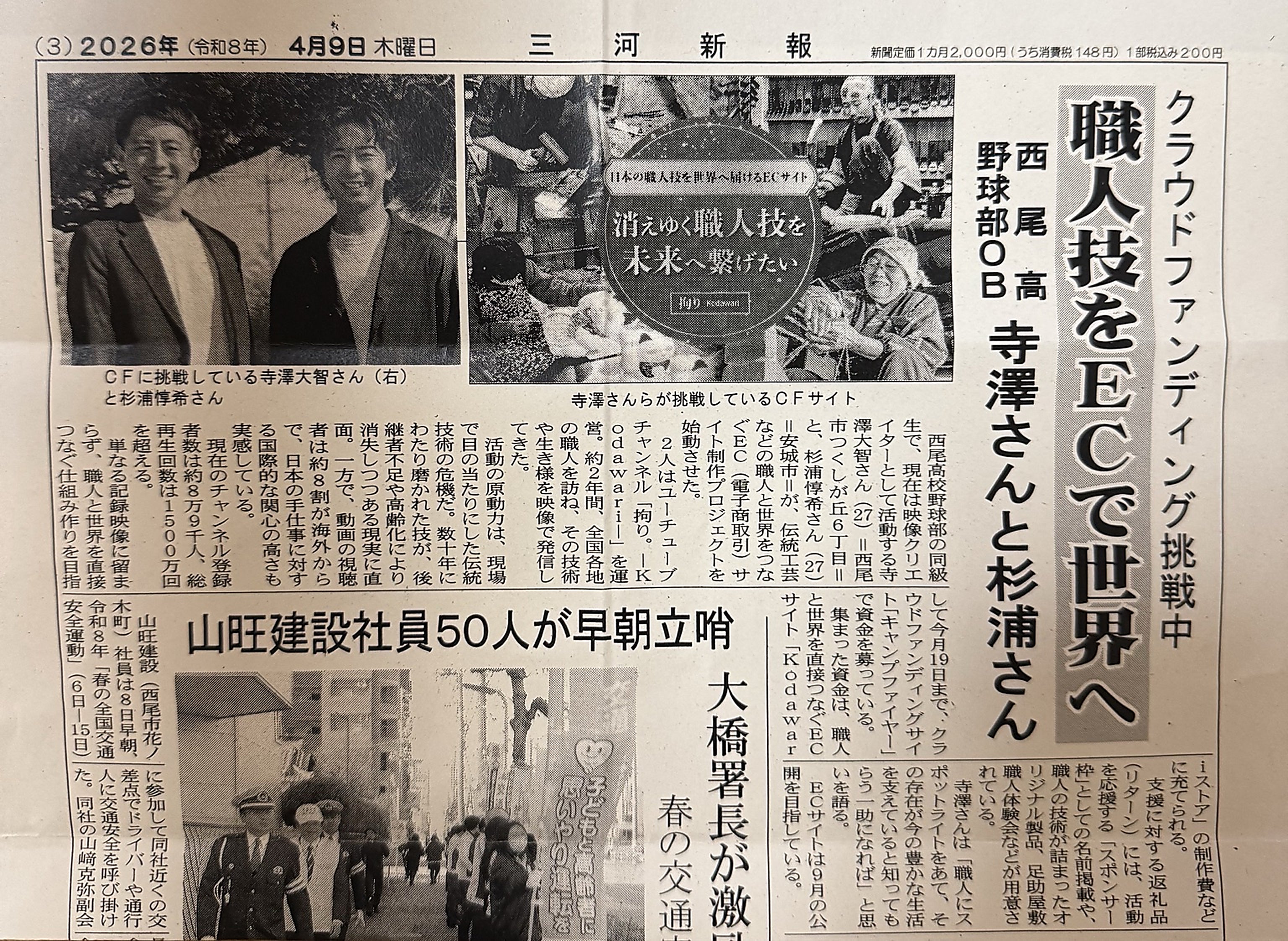 2026/04/13 08:00この度、三河新報様にクラウドファンディングの取り組みを取材していただきました。まず、この挑戦を取り上げてくださった三河新報様に、心より感謝申し上げます。まだ道半ばの僕たちの活動に目を留めていただき、地域の中で届けていただけたことを本当にありがたく感じています。正直に言うと、今の自分たちはまだ「挑戦している途中」です。完成された成功の話ではなく、今まさに結果が決まる直前の、最も苦しく、最も大事な時間を走っています。掲載していただいたことで、自分たちの活動が少しずつ自分たちだけのものではなくなり、地域の皆様にも届き始めていることを実感しています。そのことに、大きな意味と希望を感じています。ただ、現実はまだ厳しいです。クラウドファンディング終了まで、残り6日。まだ目標には届いていません。ここから先は、僕たちの力だけでは届かない領域です。もし、この活動に少しでも価値を感じていただけたら。もし、「このまま終わらせたくない」と少しでも思っていただけたら。どうか、皆様のお力を貸してください。一つひとつの応援、一人ひとりの行動が、この挑戦を前に進める大きな力になります。最後まで諦めず、全力で走り切ります。引き続き、どうぞよろしくお願いいたします。 もっと見る