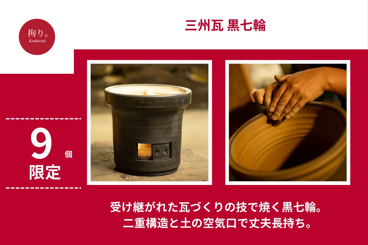 ■ 三州丸栄様「黒七輪」三州丸栄様の黒七輪は、希少性だけでも十分すごいんですが、僕はそれ以上に、“これを今も作り続けている”という事実がものすごく価値あることだと思っています。