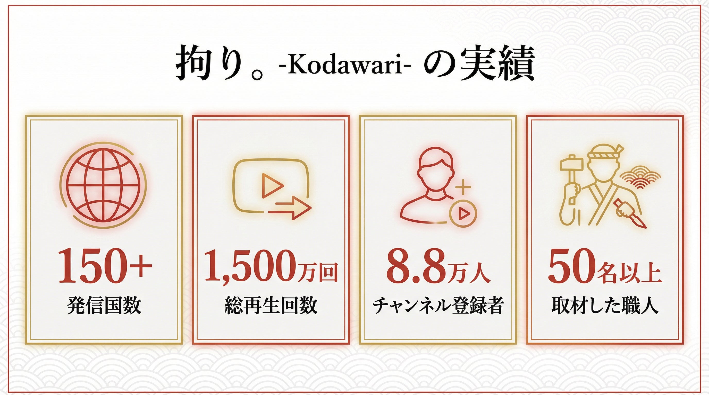 これまでに50名以上の職人さんを取材し、チャンネル登録者数は8.8万人を超え、国内だけでなく海外からも多くの視聴をいただいています。