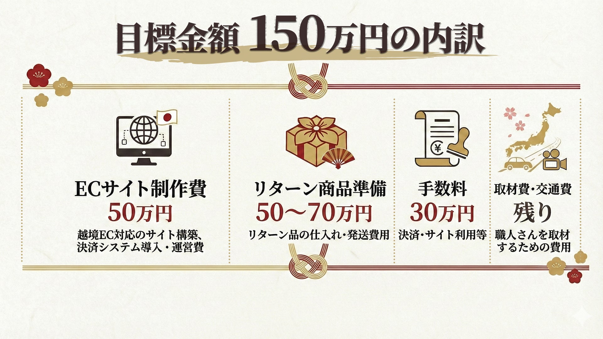 この「三方良し」のECプラットフォームを実現するためには、どうしても初期投資としてECサイトの設立資金が必要です。また、ECサイトをただ作るだけでなく、本当に価値あるものにするためには、私たちの想いに共感してくれる「最初の仲間」の存在が不可欠です。