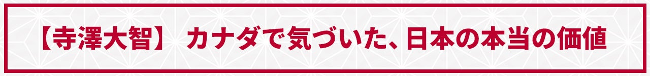多様な文化が共存するカナダで初めて、外からの視点で日本の本当の魅力に気づかされたのです。日本食の美味しさ、四季折々の風景、そして、長い文化で育まれた職人たちの精巧なモノづくり。カナダの人々が日本の伝統文化や職人技に示す敬意を目の当たりにし、