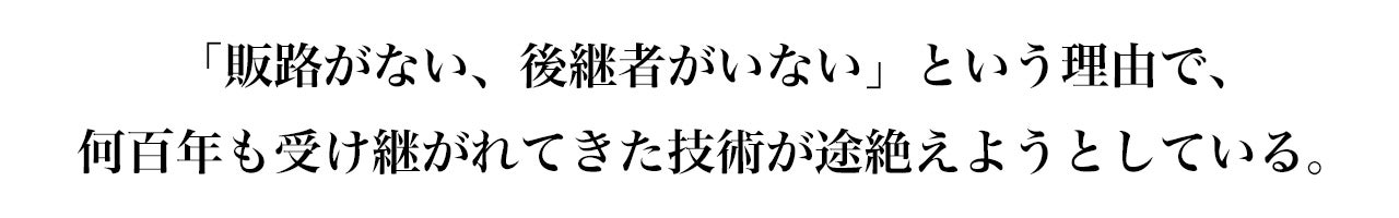 このままでは、貴重な技術が静かに途絶えてしまう恐れがあります。