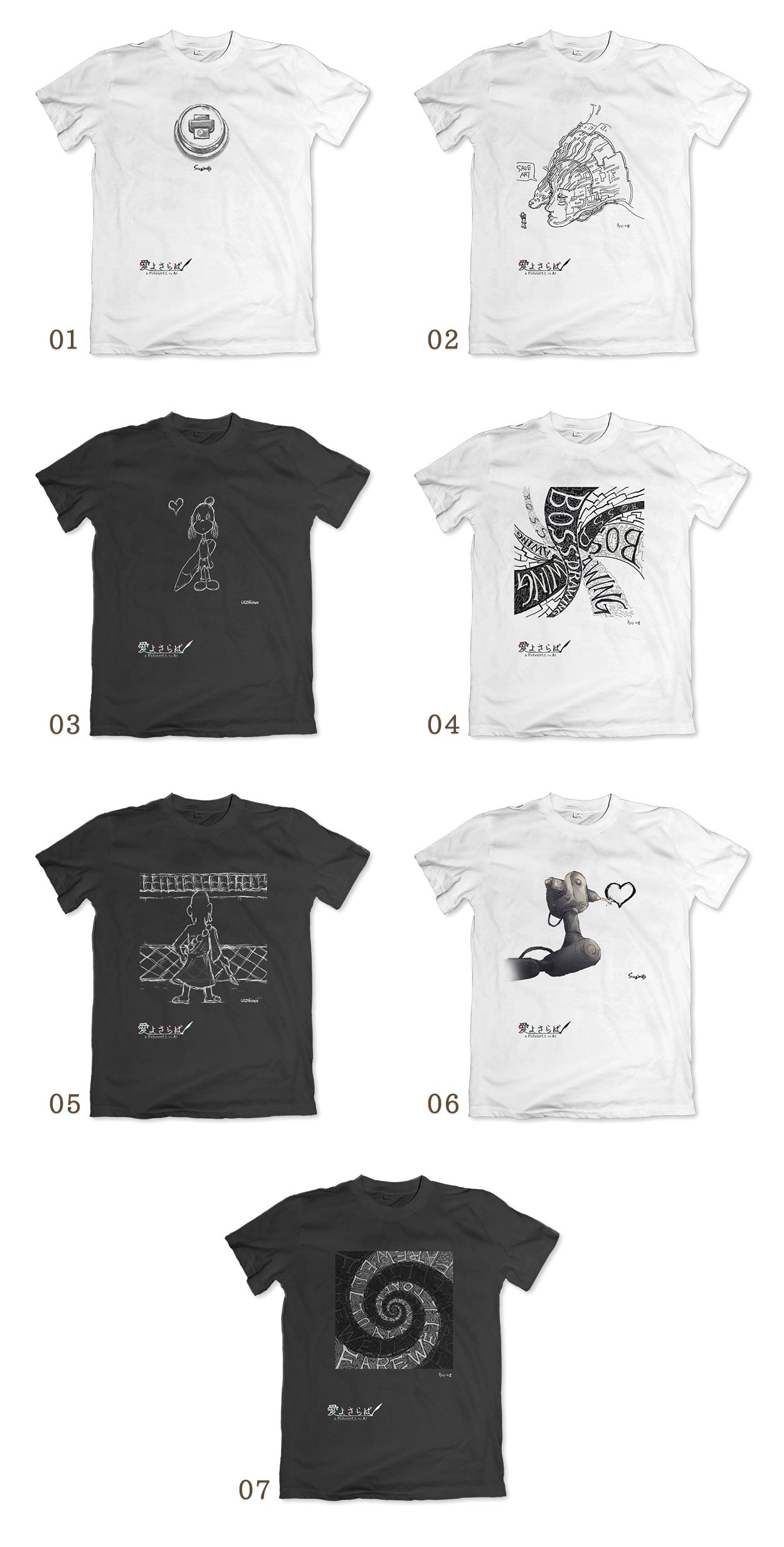 イラストはTシャツの中央に大きく配置。そのまわりを、革命絵師(アート担当スタッフ)がさりげなく装飾します。「愛よさらば」の世界に、あなたの絵がしっかり息づく、記念にぴったりなコラボTシャツです。