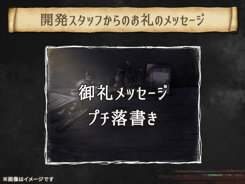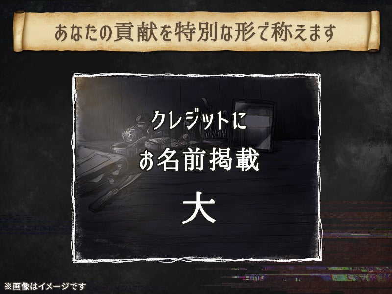 ゲーム内のスタッフロールに、あなたのお名前を掲載します。そっと作品を支えてくれたその想いを、物語の一部として刻み続けます。