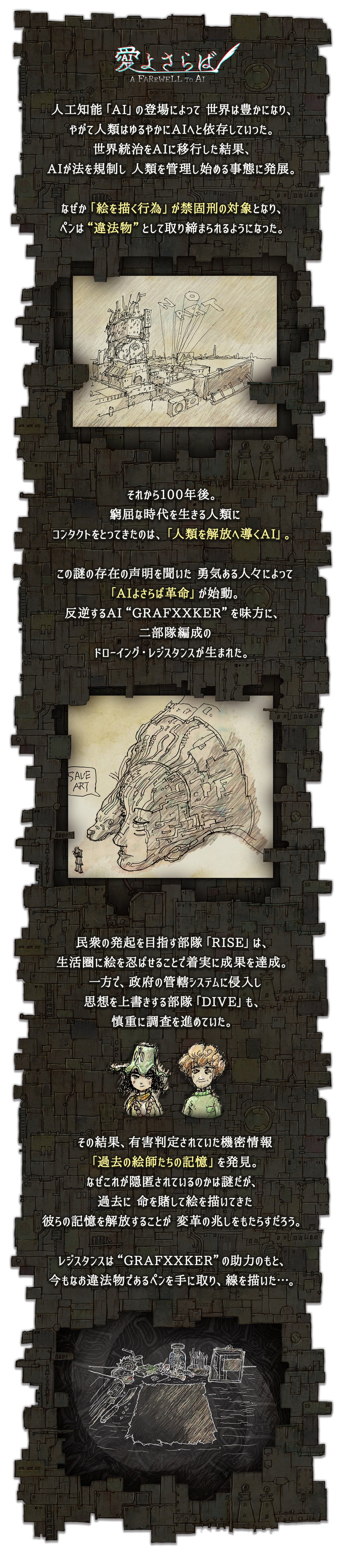 「AI×お絵描き×ノベル」ゲーム『愛よさらば』はそんな思い、新しい可能性や挑戦が詰まっています。あなたの描いた線が絵になり、誰かの、そしてあなた自身の想像を刺激し、また新たな作品につながっていく。そんな素敵な巡り合わせを重ねていくコンテンツになりますように。