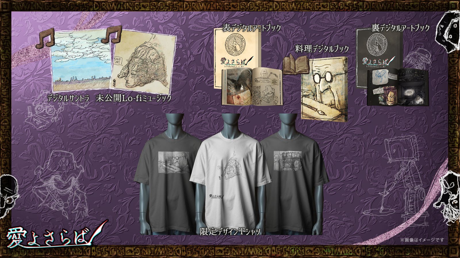 普段使いがしやすい愛よさらば限定Tシャツを揃えています。革命絵師たちの魂に触れながら生活できます。ちょうど今日私はテストで作った革命絵師のTシャツを着ておりますが、嘘じゃなくテンションが上がります。絵には不思議なパワーが宿っているのです。