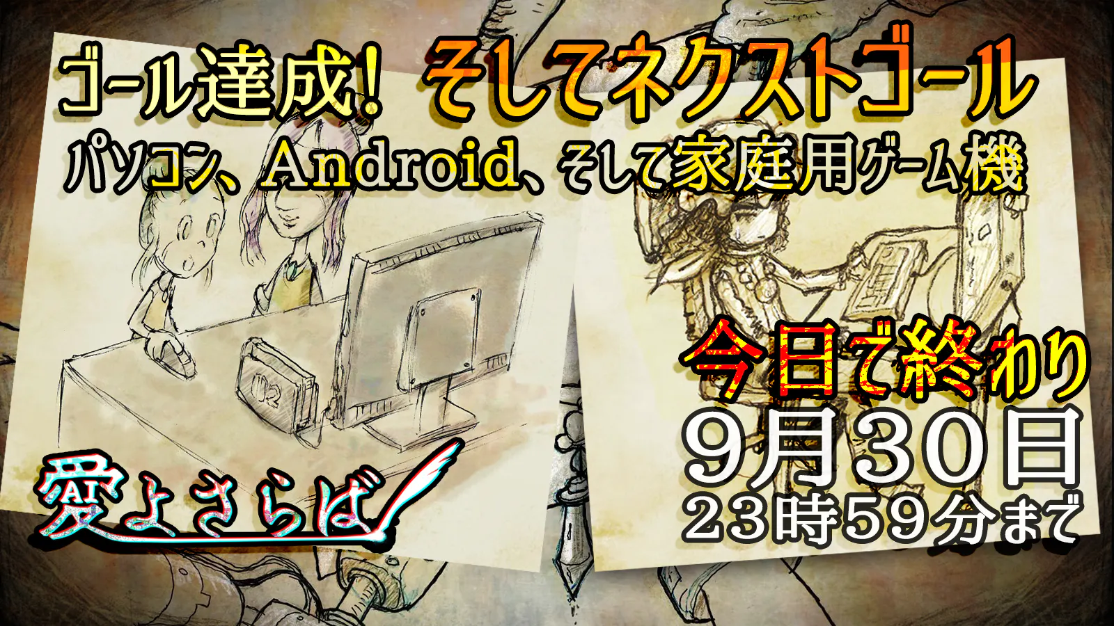 泣いても笑っても今日でクラファン終了【9月30日23時59分まで】、愛よさらばと共に最後の戦い、最後の応援ご支援をお願いします!