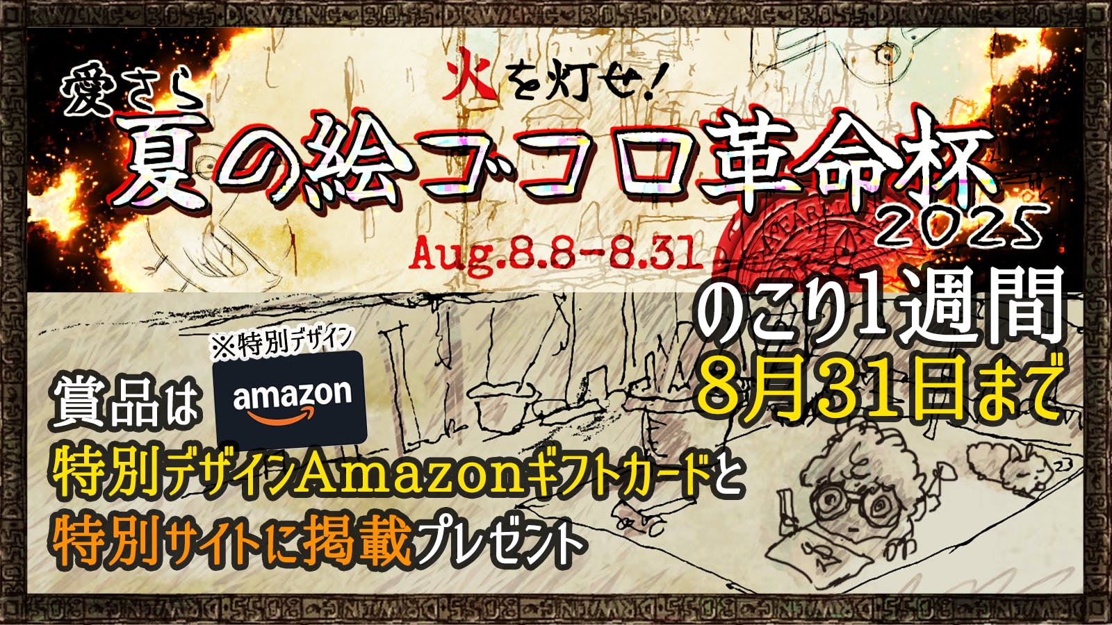 愛よさらば同志の皆さま、いつも応援をありがとうございます!しかし今年の夏ってば嘘みたいに暑いですね…。お互い熱中症に気を付けて、お絵描き革命してまいりましょう!ということで…『夏の絵ゴコロ革命杯』残りあと1週間!8月31日までひっそり初めてみたイベントで、1枚も投稿が無かったらもう開発陣だけで絵を描きまくるセルフ大会をやろう…と思ってましたが、結構な作品をご投稿をいただけて、開発一同とてもうれしいです!豪華な!…とは言えないかもしれませんが、同志の皆さまへの御礼も込めて、ささやかな賞品と名誉を用意いたしました。ジャッジは絵の上手さだけではありません、どなたにでもチャンスがあります!今日はその詳細をまとめてみます。気軽に参加してみてくださいね。~賞品と名誉~★愛さら特賞x1名さま ・特別デザインAmazonギフトカード 5,000円 ・特別サイトに掲載+愛あるコメント ⇒「愛よさらばらしい」革命的な作品が選ばれます。審査員が選びます。★反逆AI賞x1名さま ・特別デザインAmazonギフトカード 3,000円 ・特別サイトに掲載+反逆AIから愛あるコメント ⇒「反逆のAIが」独自の基準で選びます。(人間じゃないのよ)★顔が命で賞x1名さま ・Amazonギフトカード 3,000円 ・特別サイトに掲載+愛あるコメント ⇒「お顔を」基準に選ばれます。似顔絵が得意な審査員が選びます。革命の同志賞x何名さまか ・特別サイトに掲載+愛あるコメント ⇒「個人的に好き」な作品が選ばれます。各審査員が選びます。※Amazonギフトカードは、愛よさらばオリジナルデザインです。※特別サイトは準備中。賞の決定をお待ちくださいませ。愛よさらば特別サイトへご掲載愛よさらばが世にある限り(もちろん、開発が存続する限り……!)特別なサイトに、イベントにご投稿いただいた同志の皆さまの作品を審査員からの愛あるコメントを付けて掲載していこうと思います。おもしろいのは……『反逆AI賞』でしょうか!ここでは、全ての作品をうちのチームが大事にしている「反逆のAIちゃん」に見てもらい、独自の『愛ある』基準でもって選んでもらいます。5年前では考えられない方法です。技術の進歩ってば恐ろしいです。そうです、ワタシです。代表審査員と愛さら作品ご紹介今回ジャッジさせていただく人間の代表審査員と、その作品をご紹介いたします。もちろん、関係するそれ以外のスタッフも総出で決定します。池田トム(https://x.com/ikeda_tom)息子さん(9)作。お子様から大人様までご参加くださいね。納口リュウズ(https://x.com/Luc_Leon_Lecoq)最高得点とのこと。100ゴコロは…やっぱ難しい!中村隆之(https://x.com/nakataka)思いを込めたギターに高い絵ゴコロが付いてます。杉元ウズネ(https://x.com/akanesugimo)和シャイ〇ングという多様性を見せつけました。ウズシマ一幸(https://x.com/kurashimakaz)ペンを失くして指で参戦中。がんばれば指でも行ける!★特別参加★ 今村孝矢さま(https://x.com/ima_1966)かわゆい爬虫類。とってもおねむで愛らしいのです。ということで『夏の絵ゴコロ革命杯』残りあと1週間!8月31日までです🖋公式Xをリポストして、どなたも気軽にご参加くださいませ。→https://x.com/uzz_inc/status/1953658174978072613ハッシュタグ: #愛さら絵 #愛さら夏革命2025でもでも…まだ開発は存続の危機なのです!皆さまの応援とご支援が頼りです。共に革命を、どうか輪を広めてください!