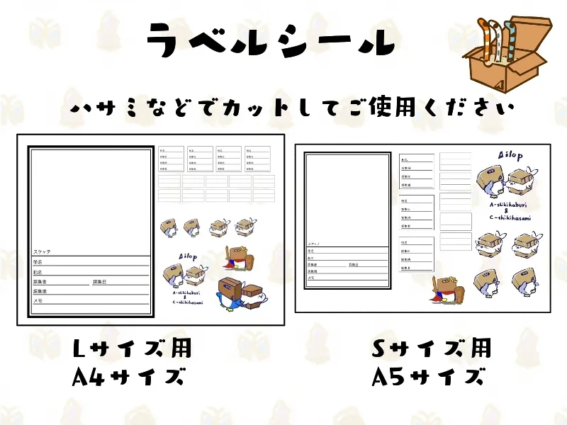 表紙用のラベルシールと中に貼る用に加え、マスコットキャラクターのシールもついています。