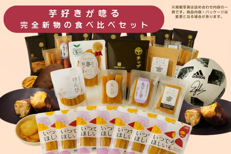 定価11,832円相当の干し芋セットを、クラファン限定価格で。平干し・丸干し・焼き芋・チップスまで、照沼の定番人気が全部入り!干し芋初心者も、リピーターさんも、間違いなしの王道セットです。