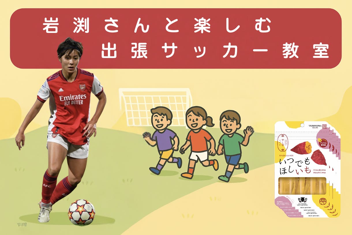 1つのリターンで30名様までOK!岩渕真奈さんが、ご支援者様のチームのもとに直接お伺いし、一緒にサッカーを。参加者には「いつでもほしいも」30袋をプレゼント。小学生、中学生、女性チーム、ママさんチームまで、幅広く受付中!
