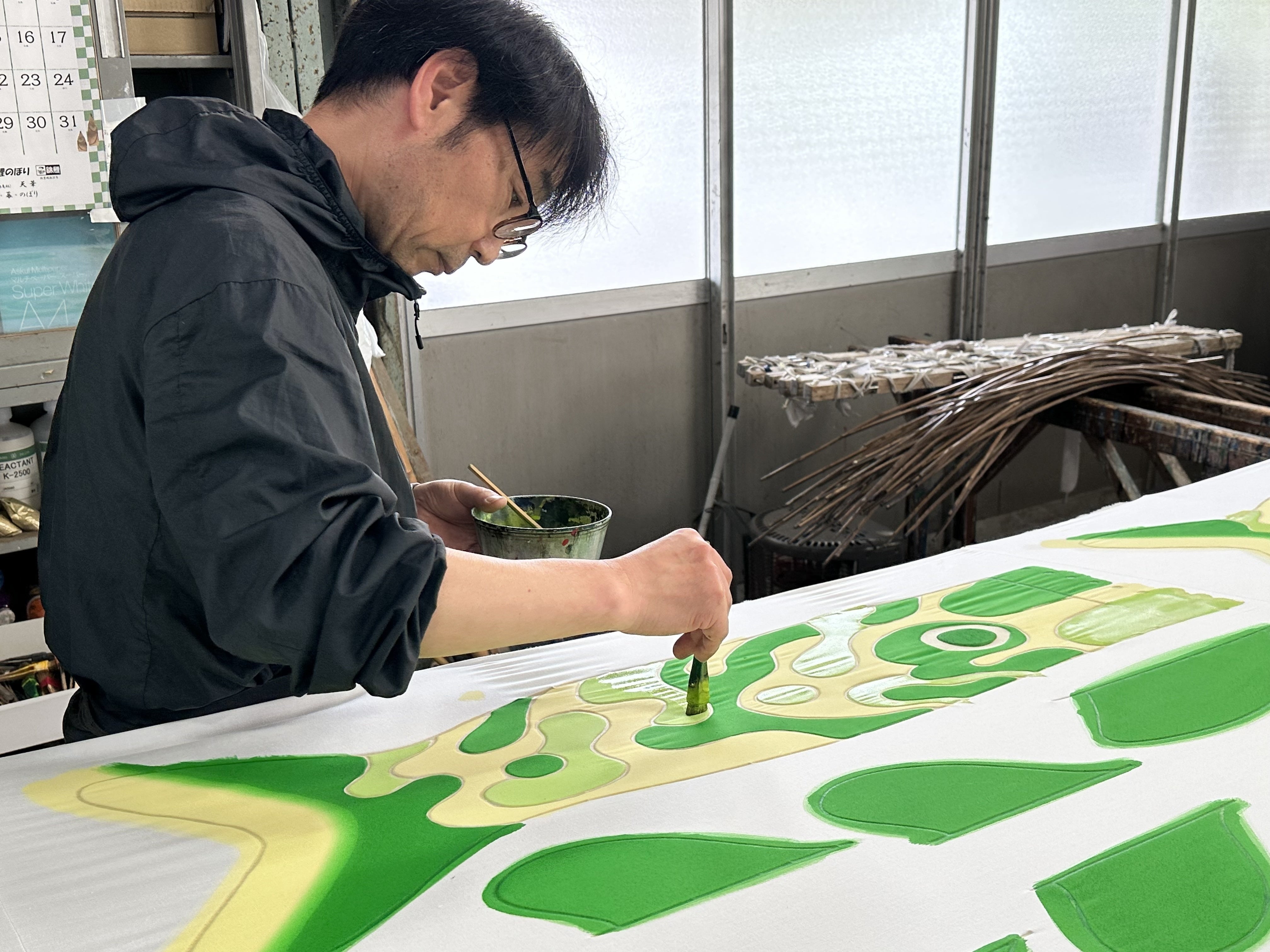 現在、6/15のプロジェクトのため職人が染色作業をしております。