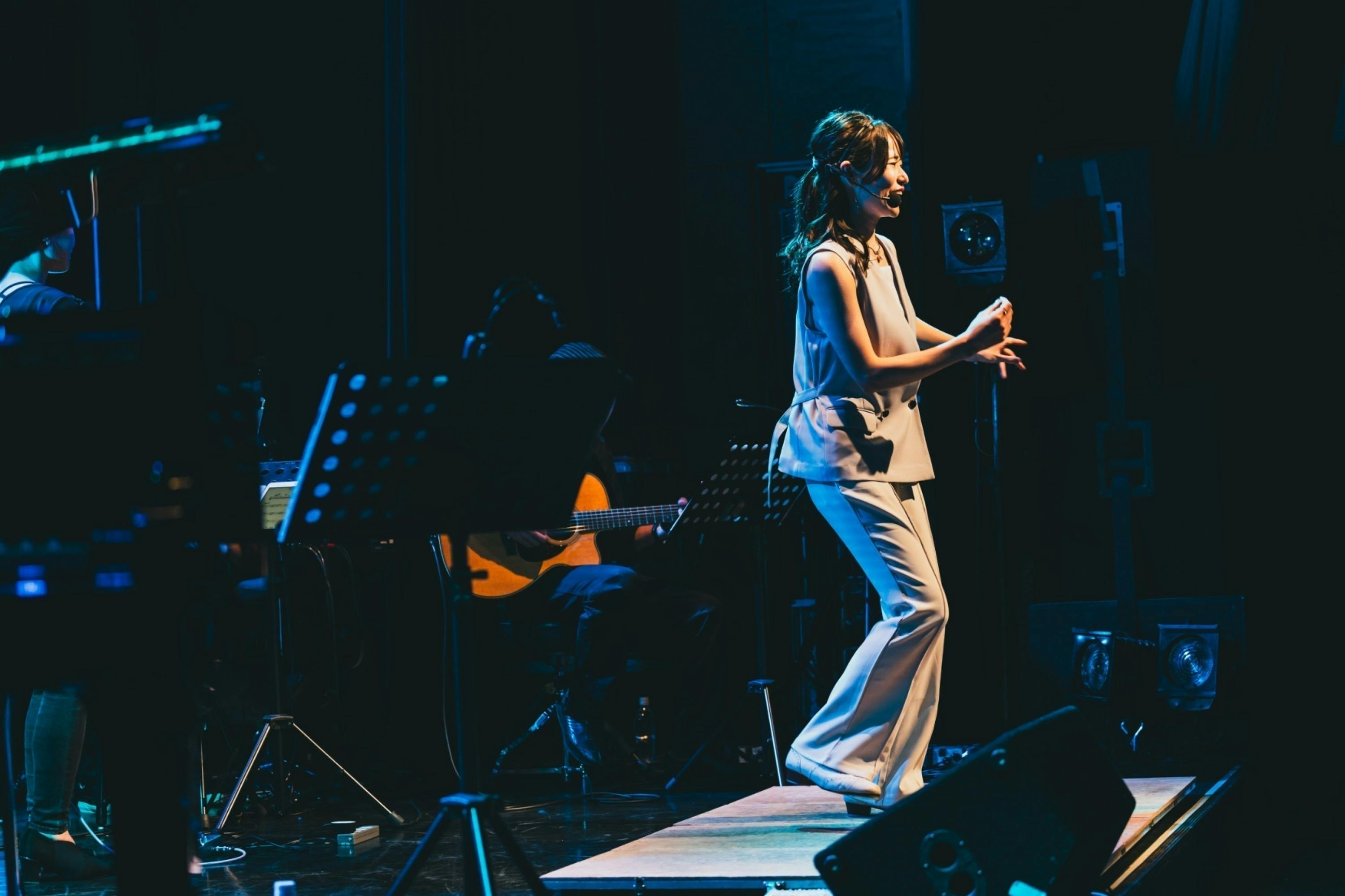ピアノ弾き語りのシンガーソングライターは数多くいるため、武器となるもの、個性を出せるものが欲しいと思い、5年前ほどから習い始め、現在は歌いながらタップダンスを披露しています。