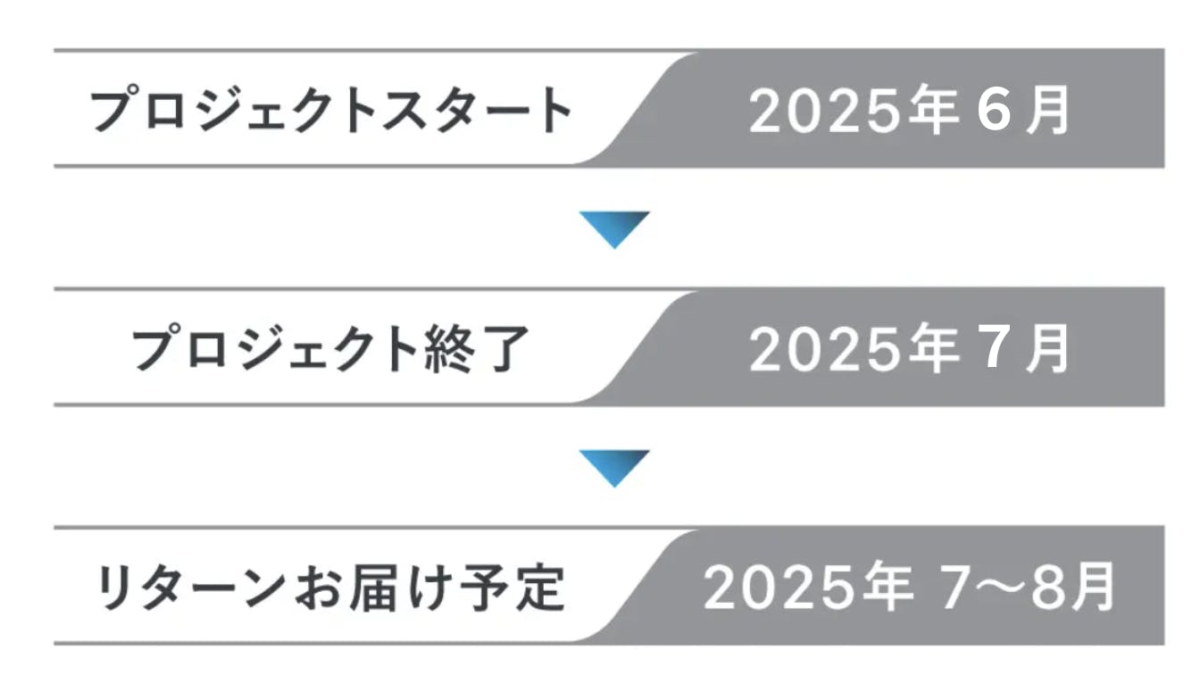 ※本文中に記載させていただいたスケジュールは、あくまでプロジェクト公開時点の予定です。クラウドファンディングを経て輸入を行う性質上、配送遅延のおそれがございます。
