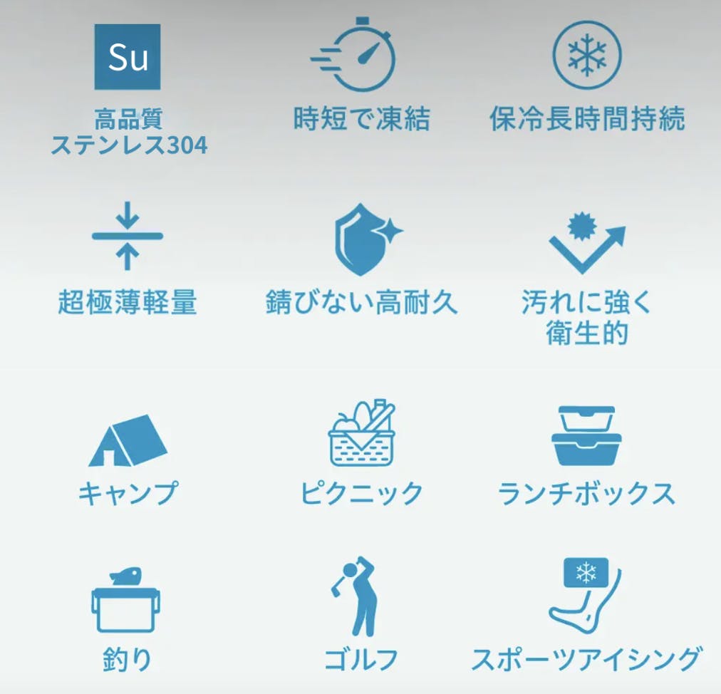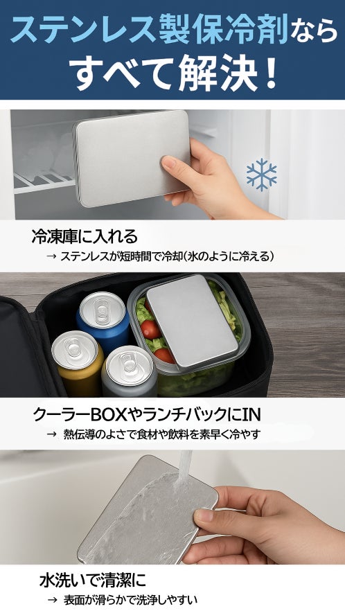 食中毒や熱中症のリスクが高まる季節において、食品や飲料をしっかり冷やして安全に保つことはとても重要です。さらに、繰り返し使えるエコ仕様で環境にも優しく、アウトドアや毎日のランチタイムまで幅広く活躍するアイテムです。