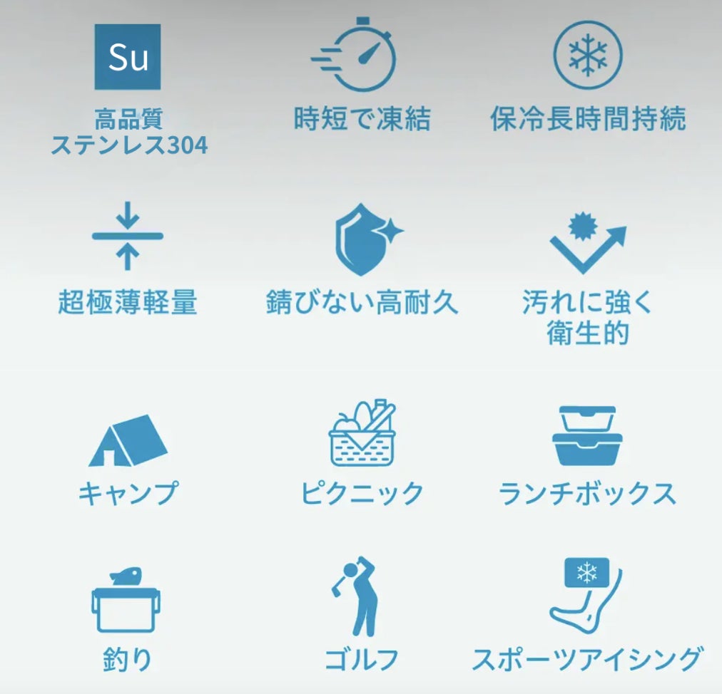 急速冷却と高い保冷力、清潔に長く使える軽量&薄型アウトドアや食卓シーンで大活躍!