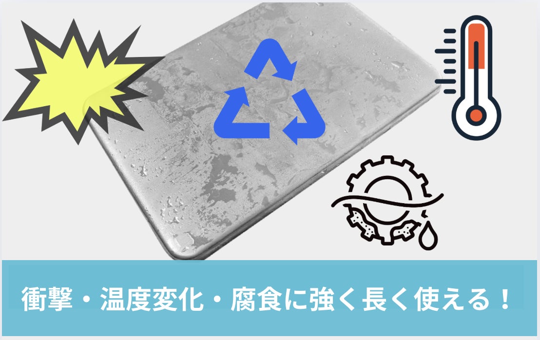 ステンレス304は衝撃・温度変化・腐食に強いため、冷凍・常温を繰り返しても変形や劣化が起きにくく、長期間使用でき、リサイクル率も高く、再生資源としても価値が高い材質です。使い捨ての保冷剤と比べて経済的かつ環境負荷が少ないです。「脱プラスチック」にも貢献!