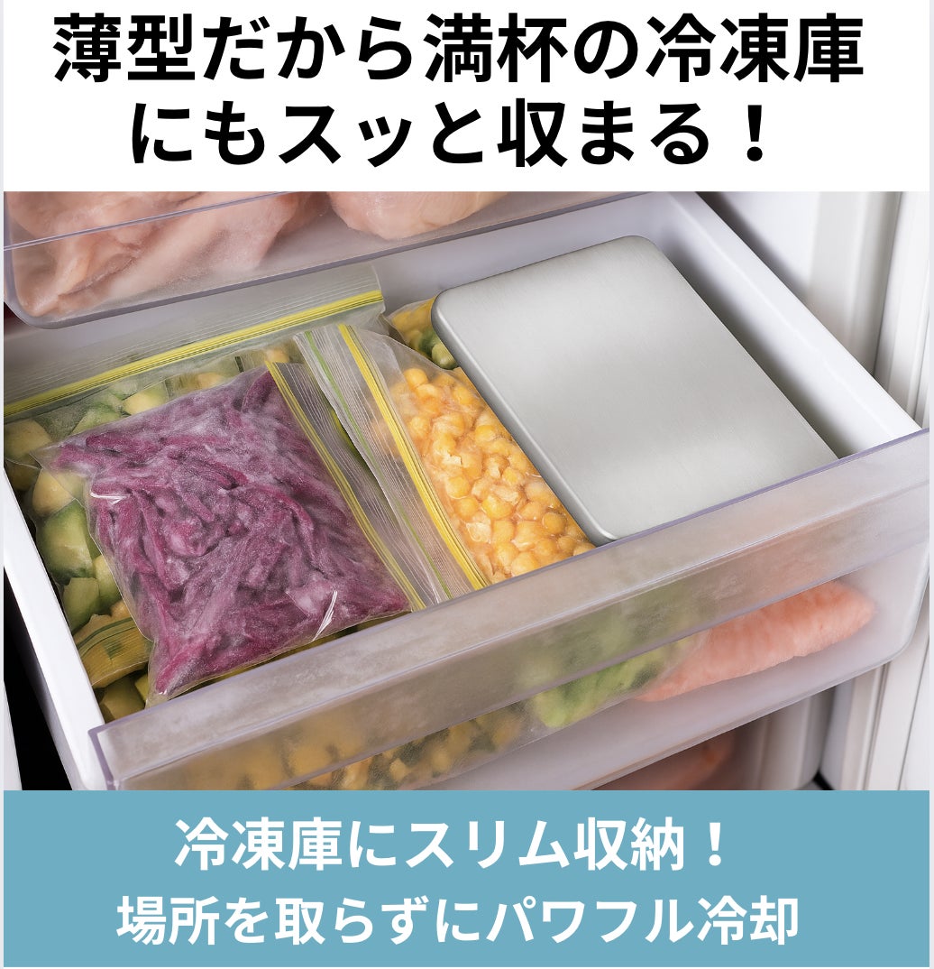 冷凍庫の底に敷いておくだけで、食材の急速冷凍にもぴったり。