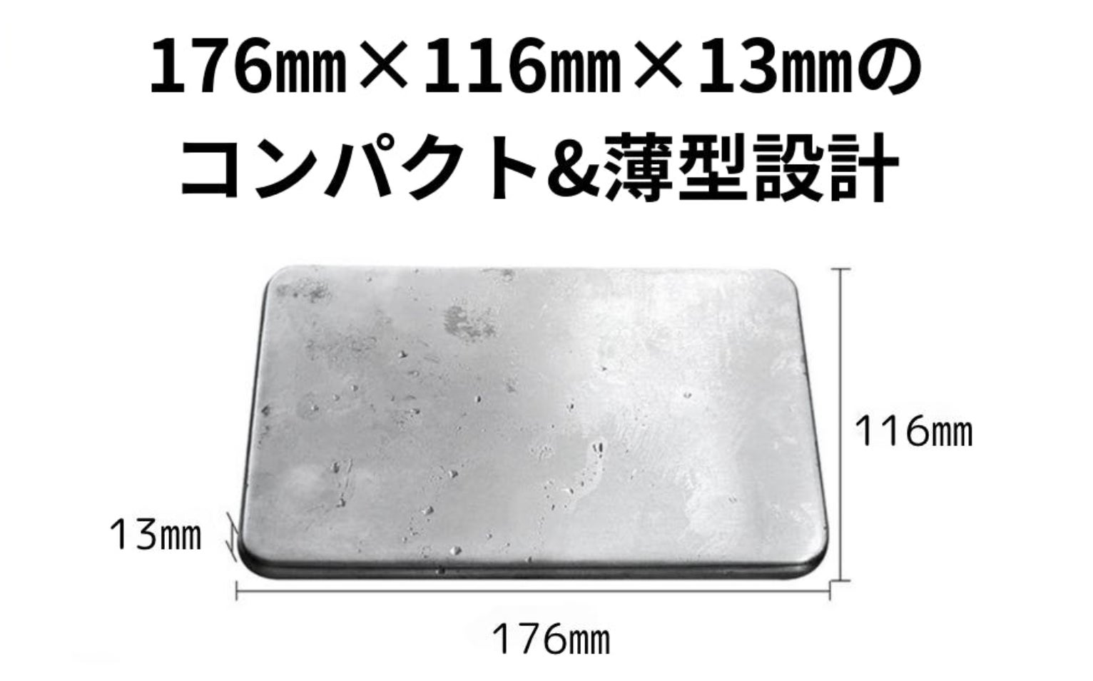 176mm × 116mm × 13mm のミニマルデザイン