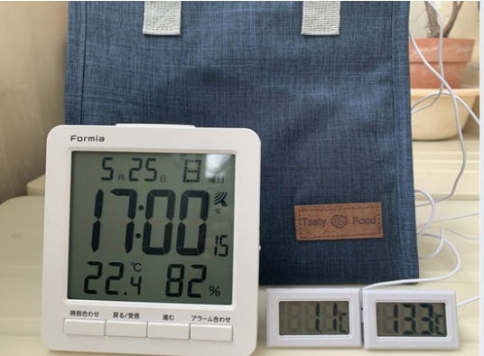 5リットル大容量の保冷バックにChill Plateの保冷剤を2個入れて温度を計測してみました。