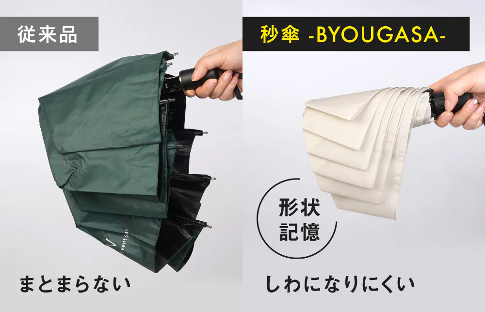 今回取り扱わせていただく折り畳み傘『秒傘-BYOUGASA-』もそんな想いを乗せた商品です。