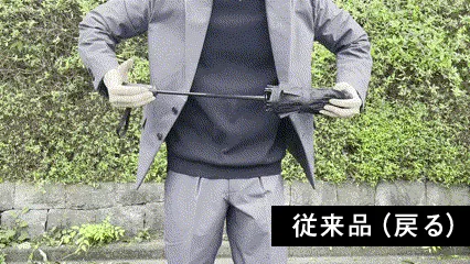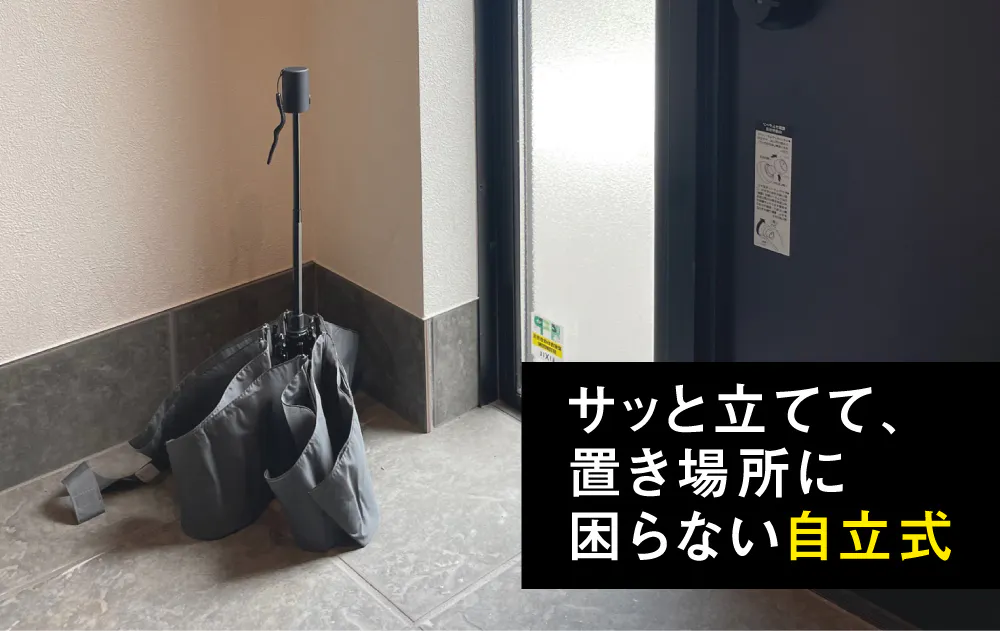 普通の折りたたみ傘に見えるけど、これ、自動開閉付き。片手で “パッ” と開いて、押せば“シュッ” と戻る。