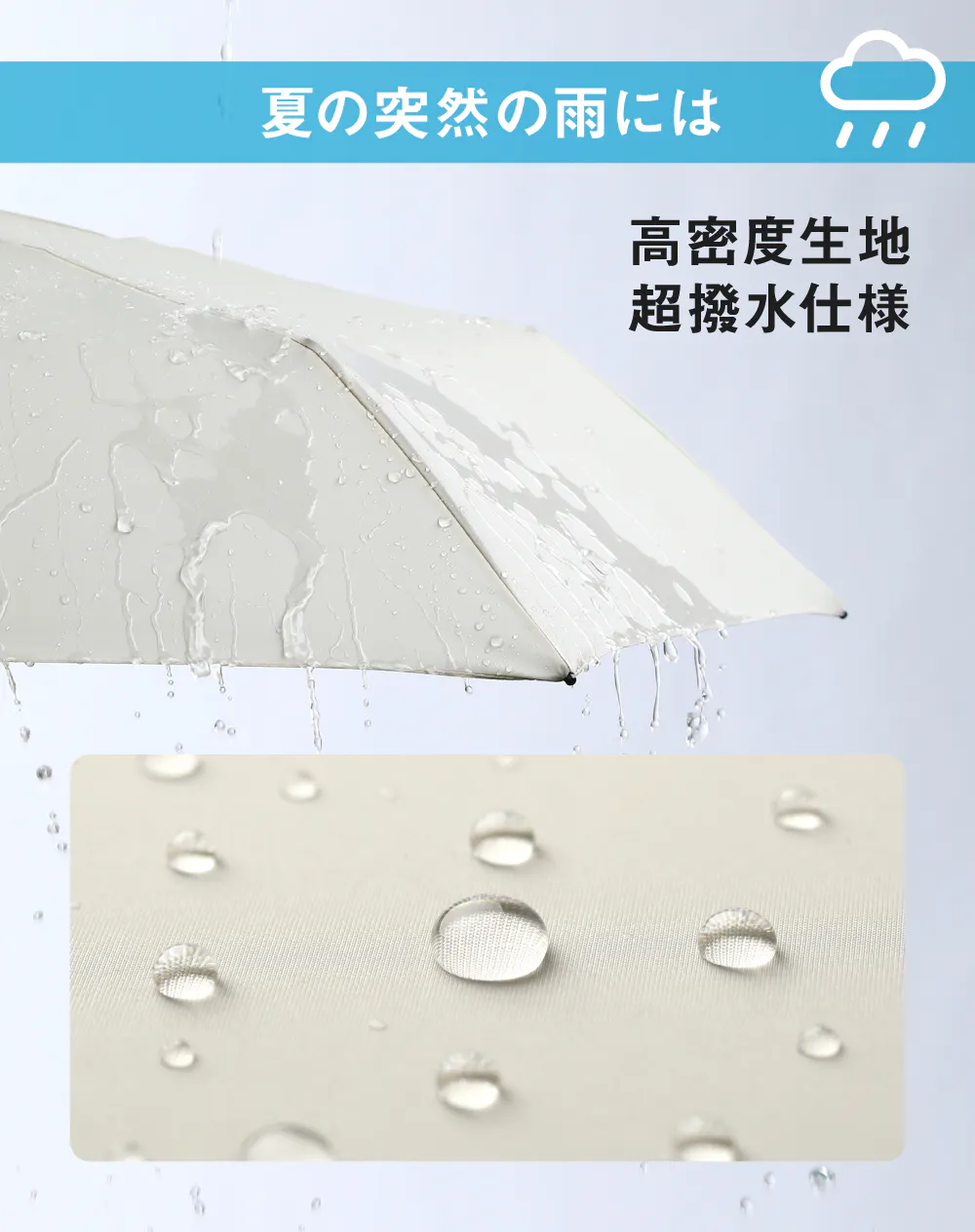 A. はい。「UPF30+」の紫外線カット機能付きなので、夏の日傘としても大活躍。これ1本で突然のゲリラ豪雨にも、ジリジリした日差しにも対応できます。