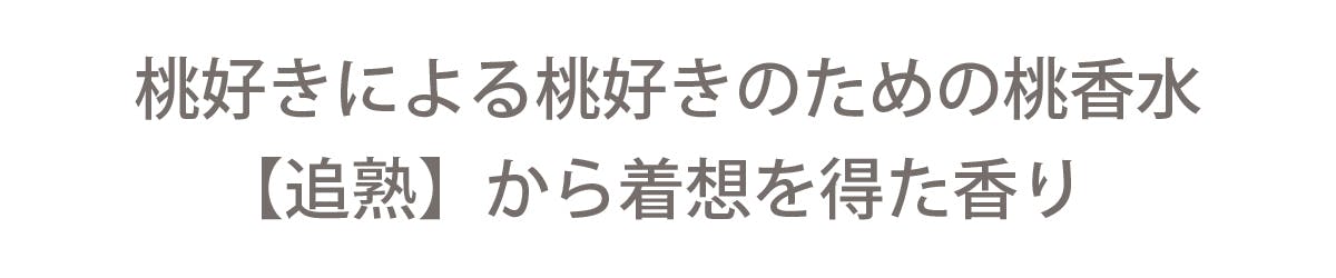 そしてこの度、念願の「桃の香」を発売する運びとなりました!!何を隠そうこの私、大の桃好きでございます!!入社当初から桃の香水が欲しいと言い続け、試作に試作に試作を重ね、何年も温めてきた「桃の香」がついに発売となります!!桃好きの方には試してほしい桃香水…!桃…!!!