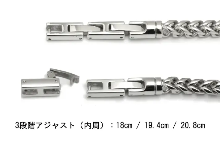 このブレスレットは、取り外し可能なコマで3段階のサイズ調整が可能。工具なしで簡単に長さを変更できるため、手首の太さに合わせて最適なフィット感を実現します。あなたのスタイルに合わせて、理想のフィット感を楽しめます。