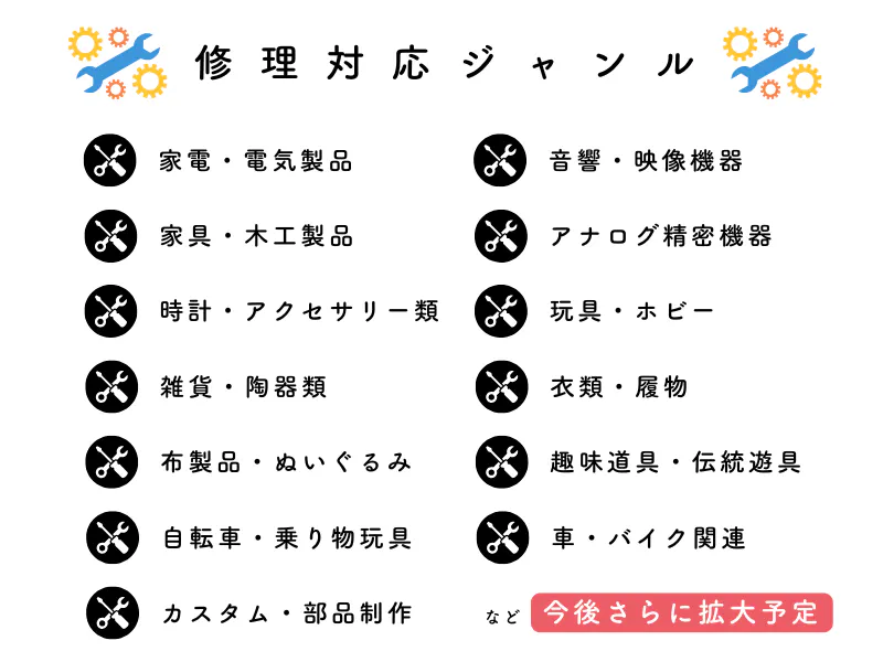 修理対応ジャンルのご紹介