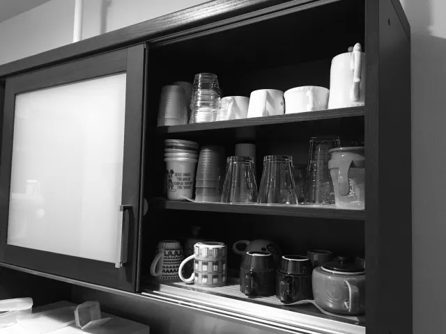 ・ヒビの入った食器棚