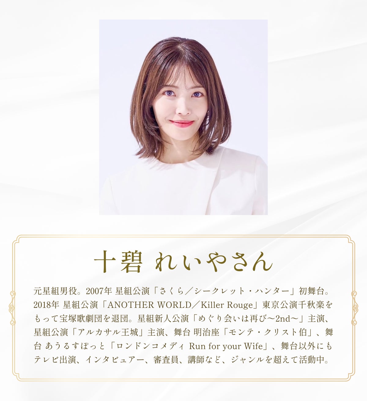 私は、宝塚歌劇団での長年にわたる活動を通じて、舞台の美しさや感動を皆様にお届けする仕事をしてきました。