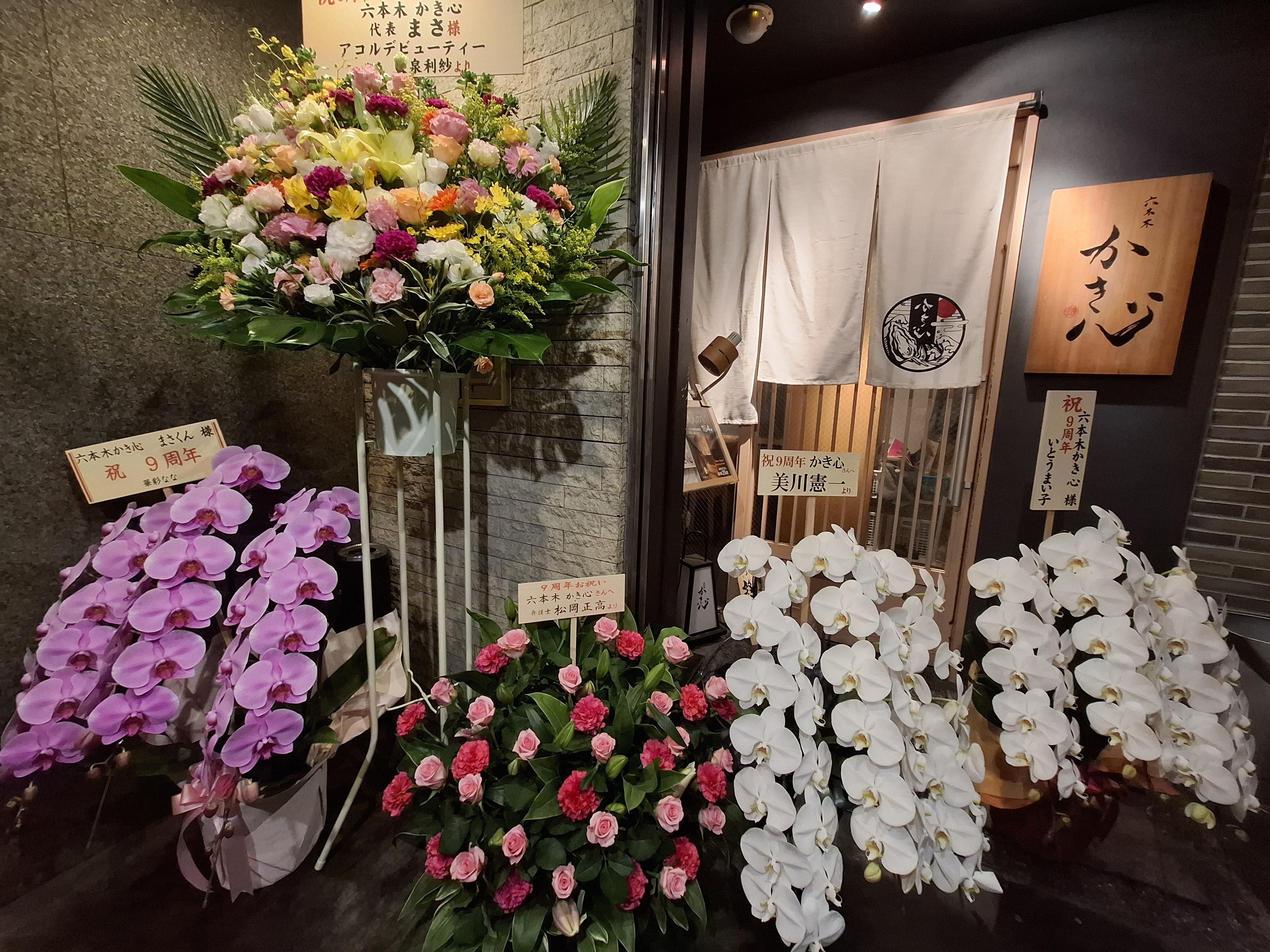 かき心は9周年を迎えました!!今年もMember様からたくさんのお花愛情と友情有り難う御座います!本日もご予約で満席になっております。明日以降はまだお席が御座います。ご予約の上ご来店宜しくお願いします!