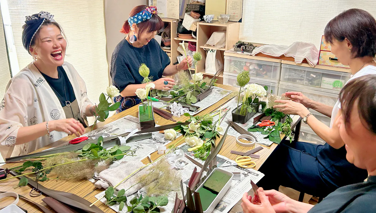 花を囲み、笑い、褒め合う時間。