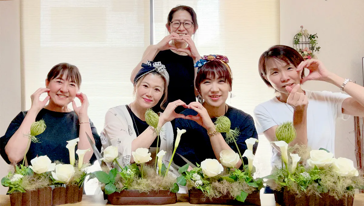 途中からブライダルブーケを担当することになり、もっと学びたいと資格を取る為に週に一度、試験前には何度も往復100Kmの距離を通い、3年かけて講師の資格を取得。学び深めるうちに「これを誰かに伝えたい」という気持ちが大きくなってきた私はフラワーアレンジメント教室を開くことにしました。
