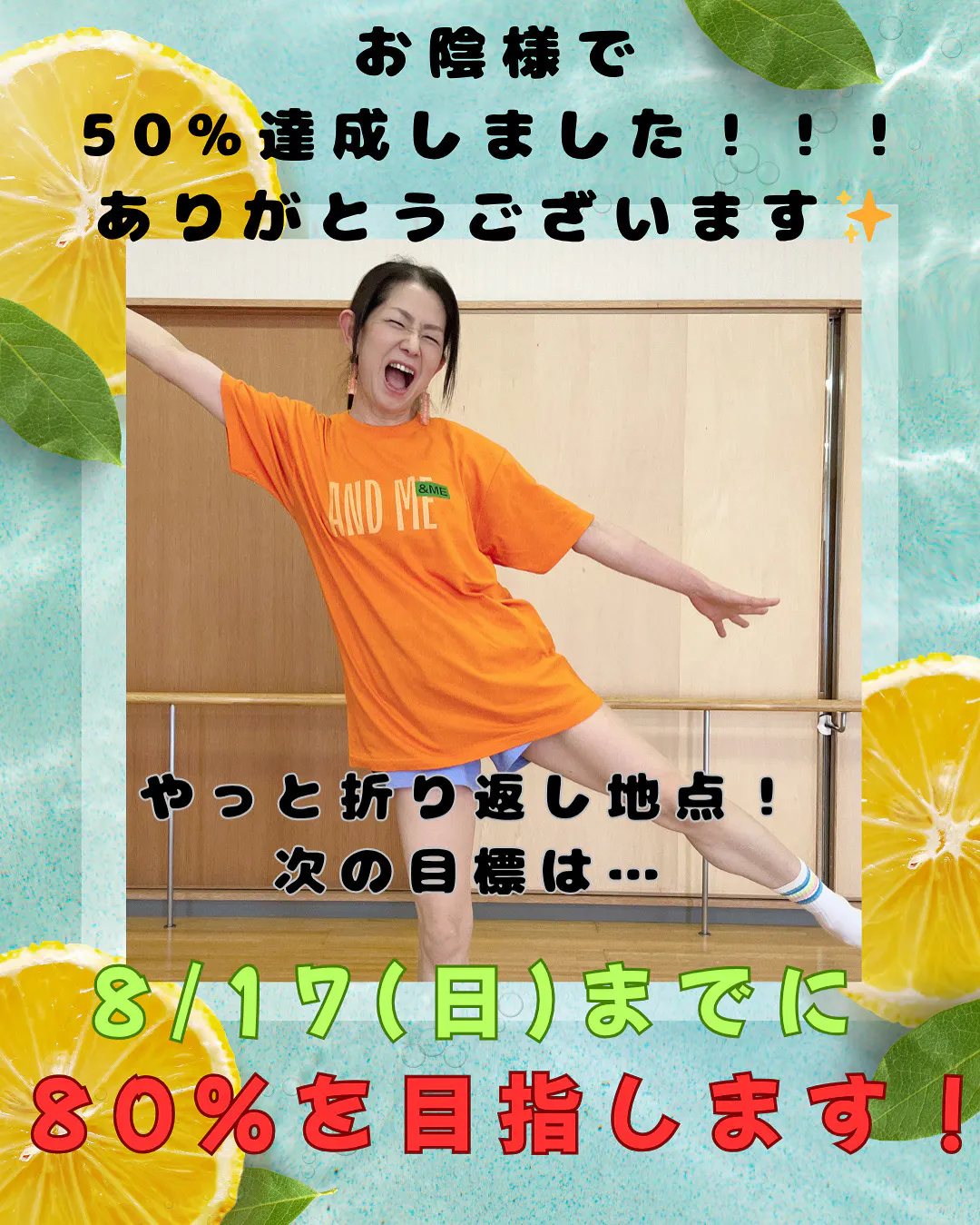 次は8/17(日)までに80%達成が目標です!