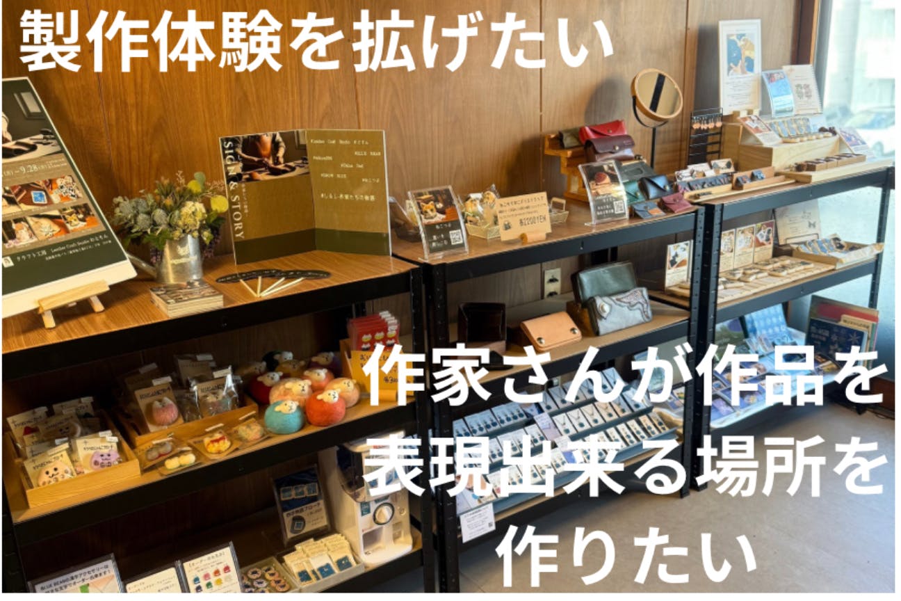 地域貢献として介護施設や福祉施設だけでなく、様々な理由で工房へ来訪出来ない方に向けた個人宅への出張革教室・ワークショップの開設をしたい。そして、ハンドメイド作家さんが自分を表現できるレンタルスペースをさらに拡げていきたいと考えています。