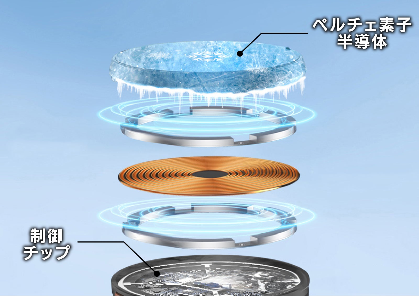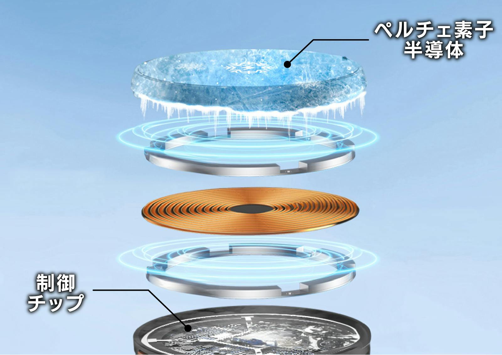 ペルチェ式とはペルチェ素子と呼ばれる半導体に電流を流すと、熱の吸収と放出を行う原理を応用したもので、小型の冷蔵庫にも使われている技術です。