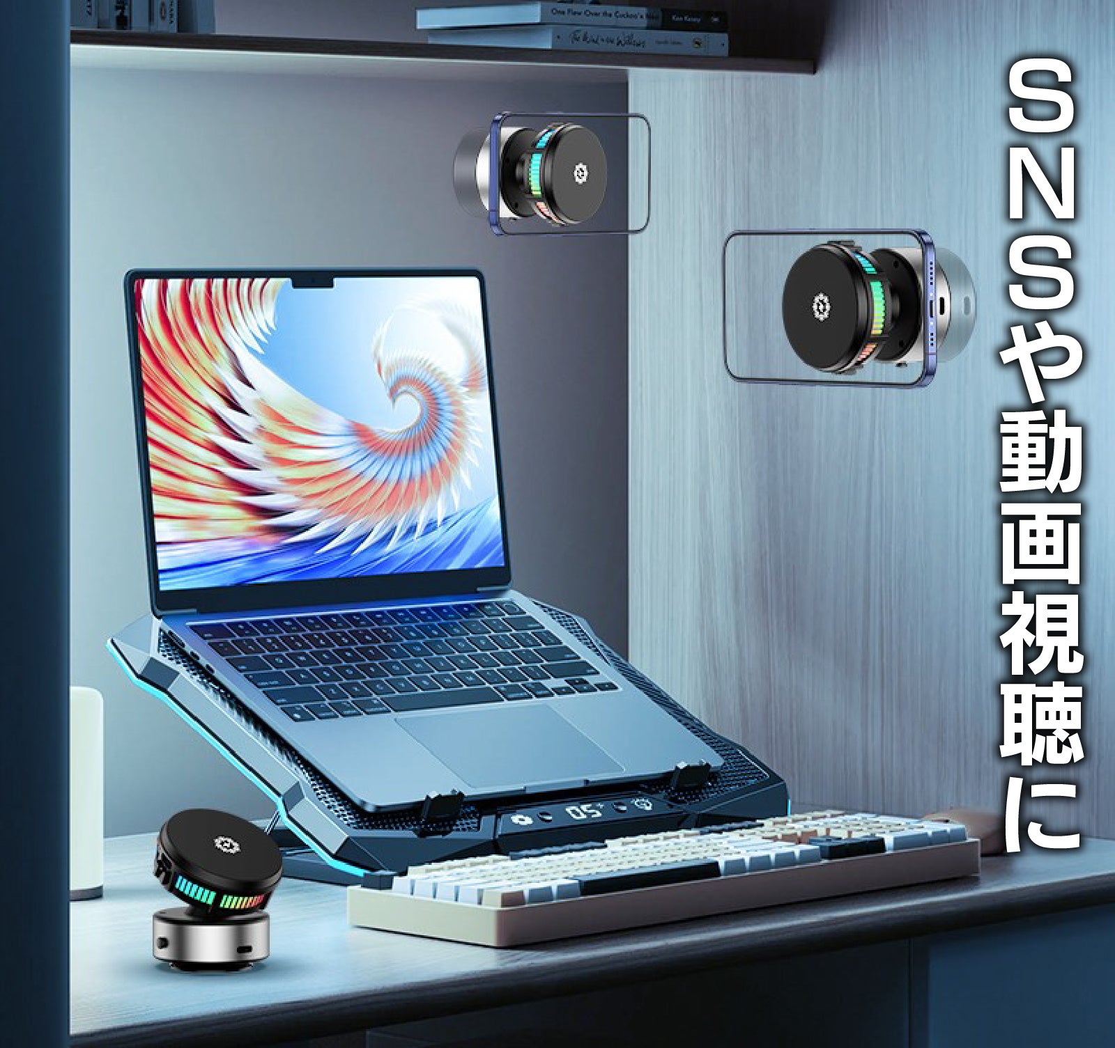 【冷却スマホホルダー】は3秒でスマホを冷却し、充電中の加熱を防ぐ多機能スマホホルダーです。