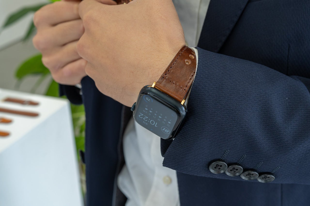 仕様:スポーツバンドの使い勝手を本革で再現したスマートウォッチバンド。